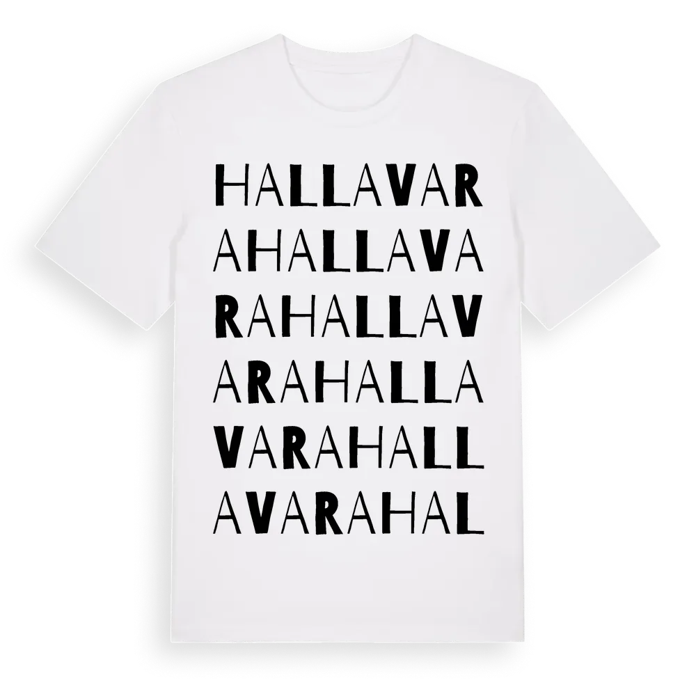 Hallavara ordlek t-shirt är inspirerad av byn Hallavara i Skåne län, Sverige. Tröjan är designad för dig som har en speciell koppling till platsen – oavsett om du bor här, har rötterna här eller bara älskar Hallavara.