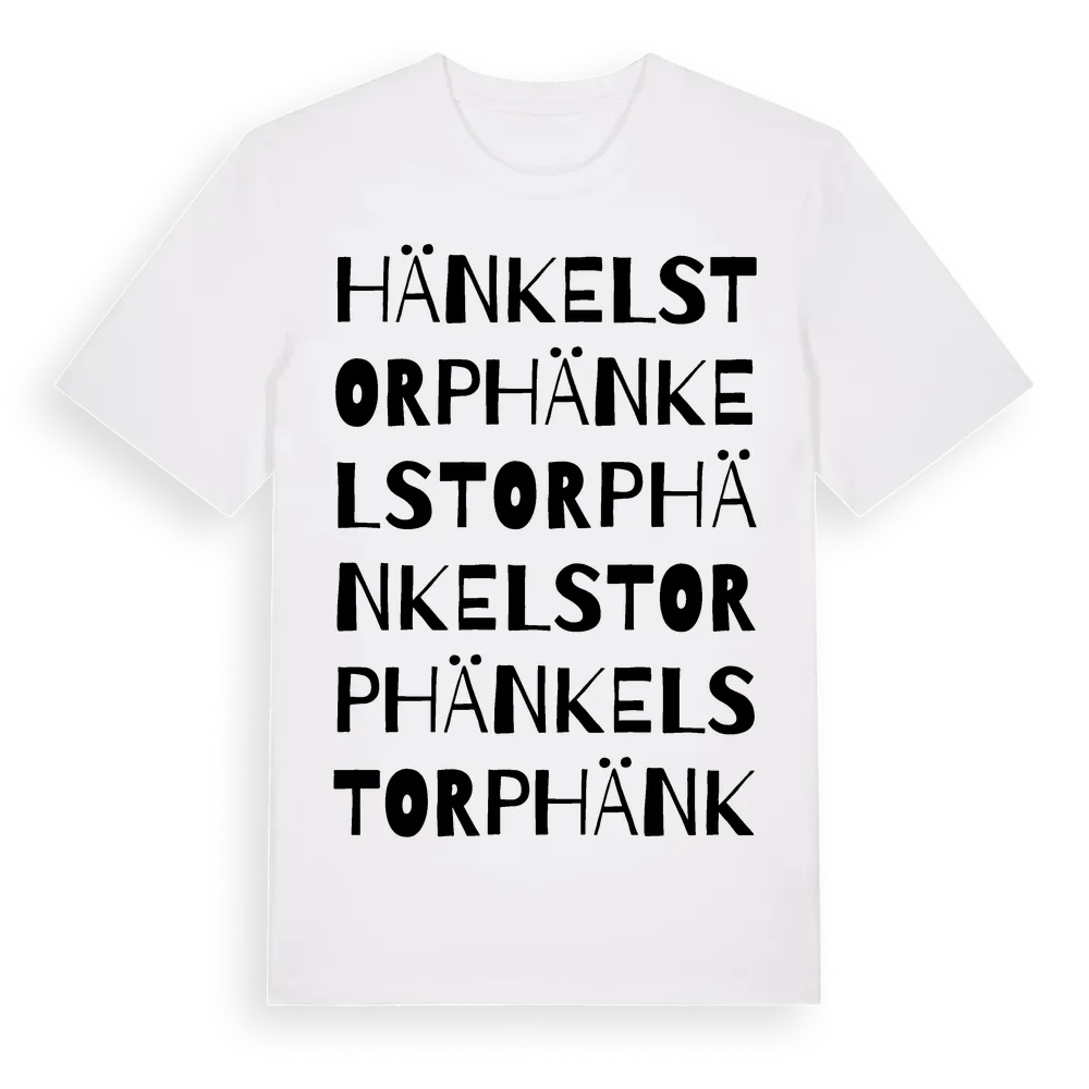 Hänkelstorp ordlek t-shirt är inspirerad av stadsdelen Hänkelstorp i Skåne län, Sverige. Tröjan är designad för dig som har en speciell koppling till platsen – oavsett om du bor här, har rötterna här eller bara älskar Hänkelstorp.