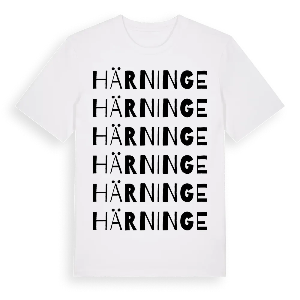 Härninge ordlek t-shirt är inspirerad av byn Härninge i Skåne län, Sverige. Tröjan är designad för dig som har en speciell koppling till platsen – oavsett om du bor här, har rötterna här eller bara älskar Härninge.