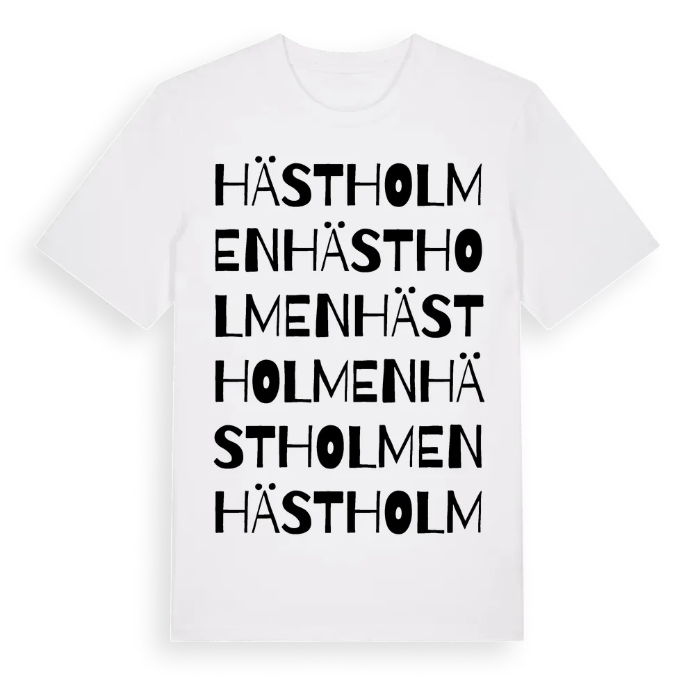 Hästholmen ordlek t-shirt är inspirerad av Hästholmen i Skåne län, Sverige. Tröjan är designad för dig som har en speciell koppling till platsen – oavsett om du bor här, har rötterna här eller bara älskar Hästholmen.