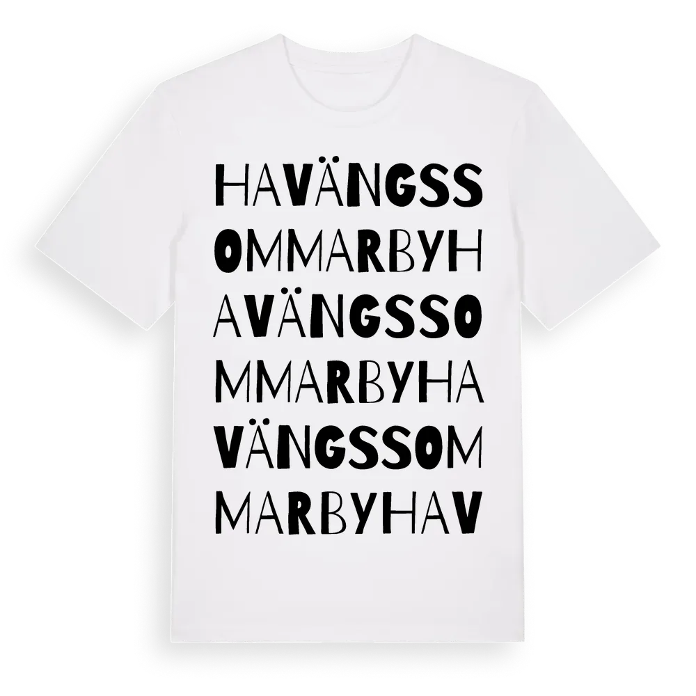 Havängs Sommarby ordlek t-shirt är inspirerad av byn Havängs Sommarby i Skåne län, Sverige. Tröjan är designad för dig som har en speciell koppling till platsen – oavsett om du bor här, har rötterna här eller bara älskar Havängs Sommarby.