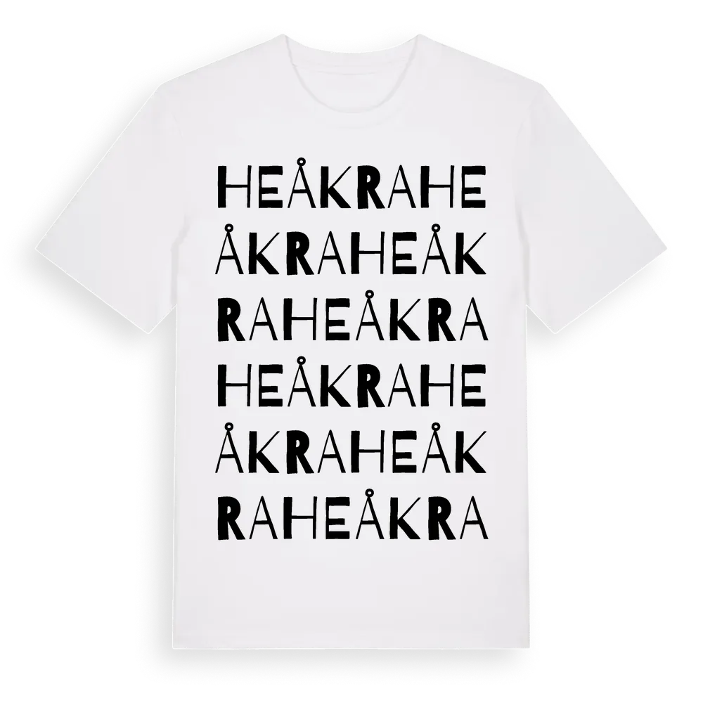 Heåkra ordlek t-shirt är inspirerad av Heåkra i Skåne län, Sverige. Tröjan är designad för dig som har en speciell koppling till platsen – oavsett om du bor här, har rötterna här eller bara älskar Heåkra.