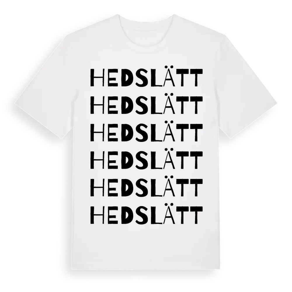 Hedslätt ordlek t-shirt är inspirerad av Hedslätt i Skåne län, Sverige. Tröjan är designad för dig som har en speciell koppling till platsen – oavsett om du bor här, har rötterna här eller bara älskar Hedslätt.