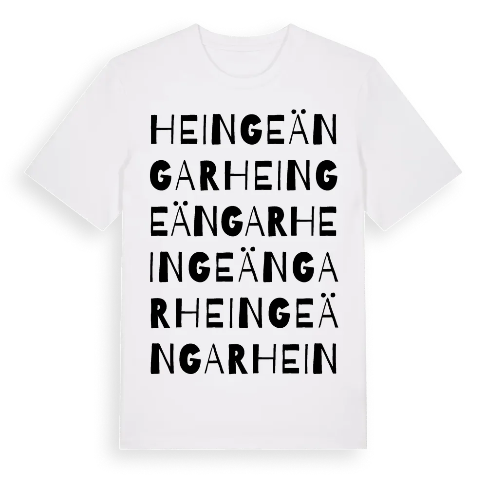 Heinge Ängar ordlek t-shirt är inspirerad av Heinge Ängar i Skåne län, Sverige. Tröjan är designad för dig som har en speciell koppling till platsen – oavsett om du bor här, har rötterna här eller bara älskar Heinge Ängar.