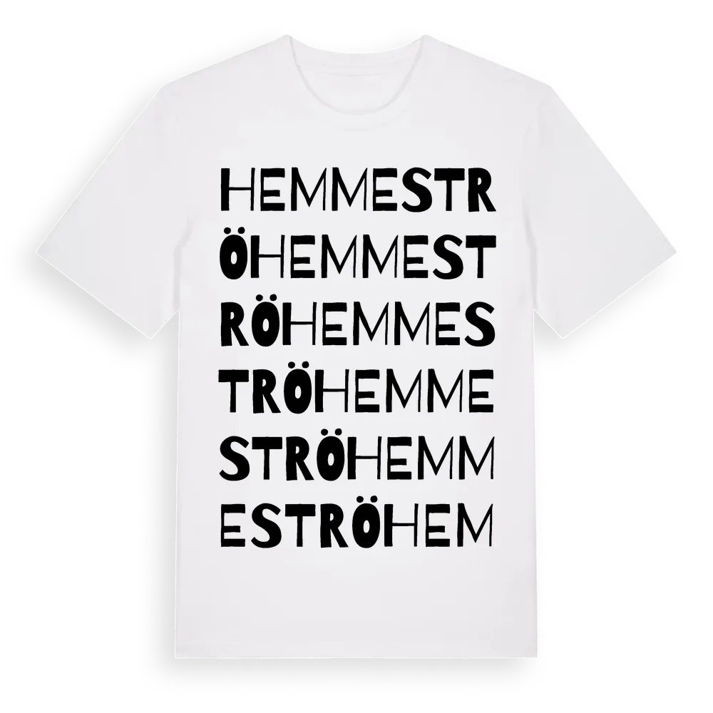 Hemmeströ ordlek t-shirt är inspirerad av byn Hemmeströ i Skåne län, Sverige. Tröjan är designad för dig som har en speciell koppling till platsen – oavsett om du bor här, har rötterna här eller bara älskar Hemmeströ.