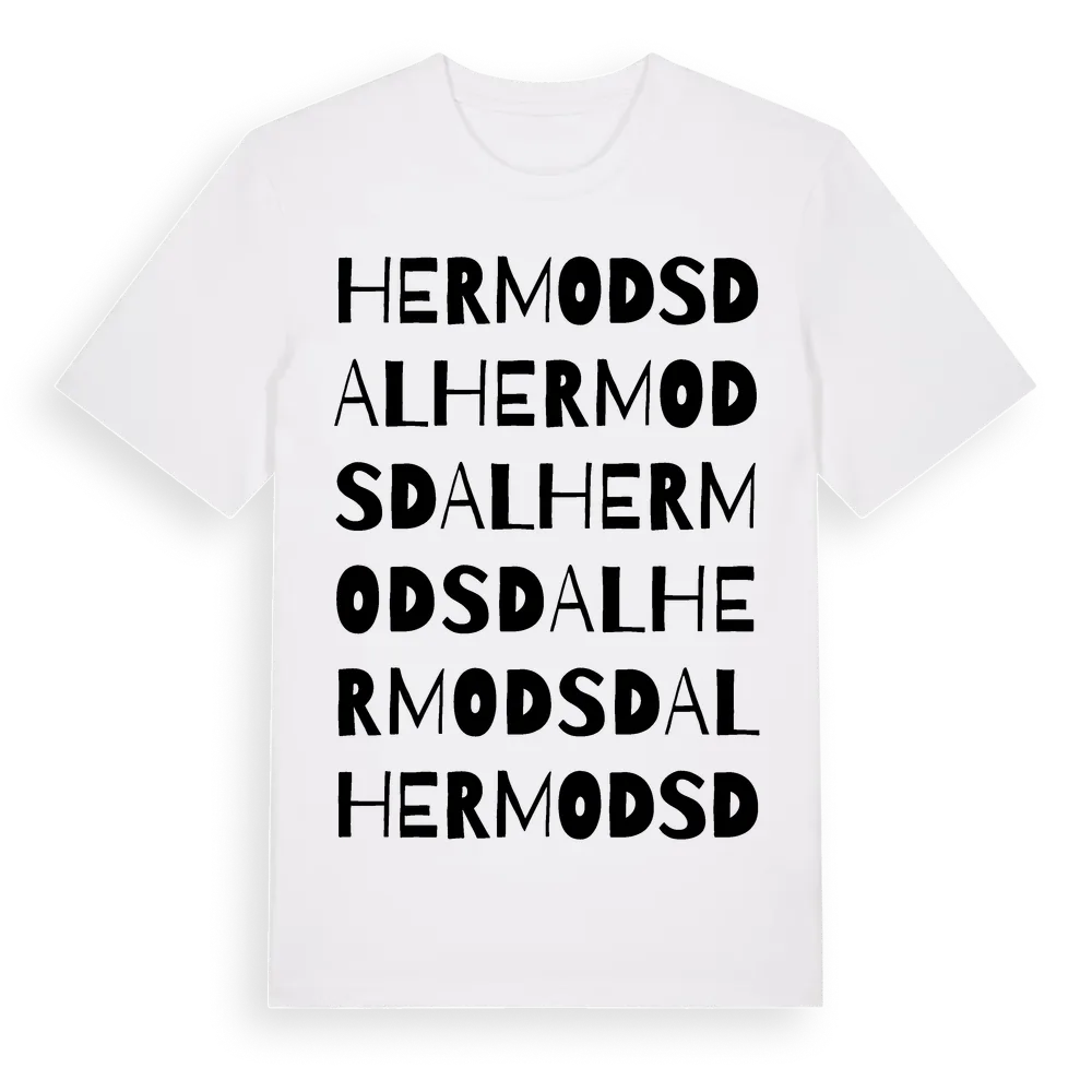 Hermodsdal ordlek t-shirt är inspirerad av Hermodsdal i Skåne län, Sverige. Tröjan är designad för dig som har en speciell koppling till platsen – oavsett om du bor här, har rötterna här eller bara älskar Hermodsdal.