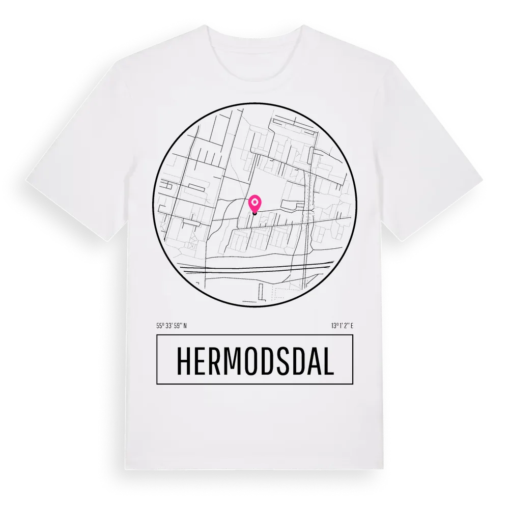 Hermodsdal t-shirt är inspirerad av Hermodsdal i Skåne län, Sverige. Tröjan är designad för dig som har en speciell koppling till platsen – oavsett om du bor här, har rötterna här eller bara älskar Hermodsdal.