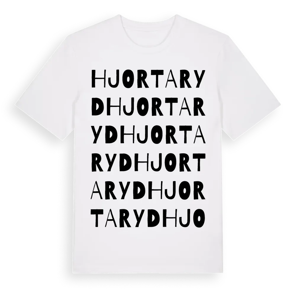 Hjortaryd ordlek t-shirt är inspirerad av Hjortaryd i Skåne län, Sverige. Tröjan är designad för dig som har en speciell koppling till platsen – oavsett om du bor här, har rötterna här eller bara älskar Hjortaryd.
