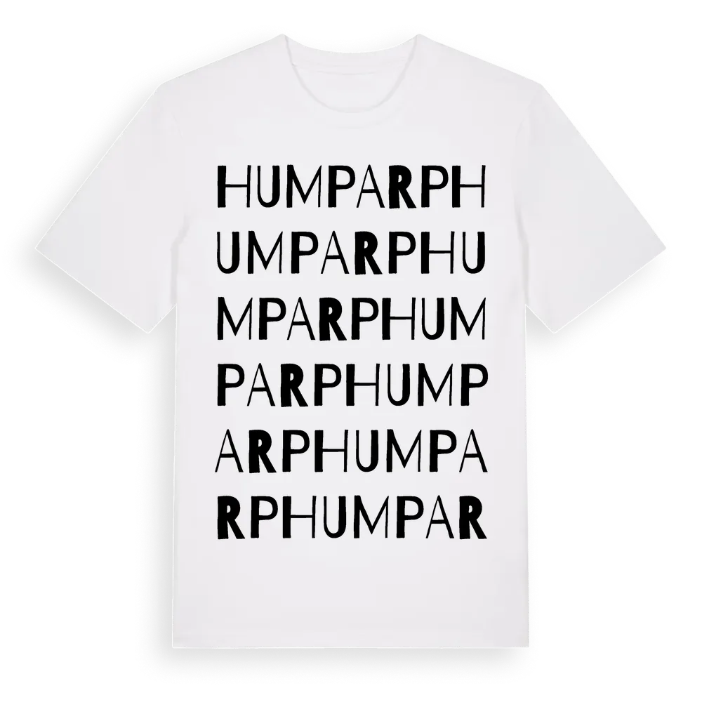Humparp ordlek t-shirt är inspirerad av Humparp i Skåne län, Sverige. Tröjan är designad för dig som har en speciell koppling till platsen – oavsett om du bor här, har rötterna här eller bara älskar Humparp.