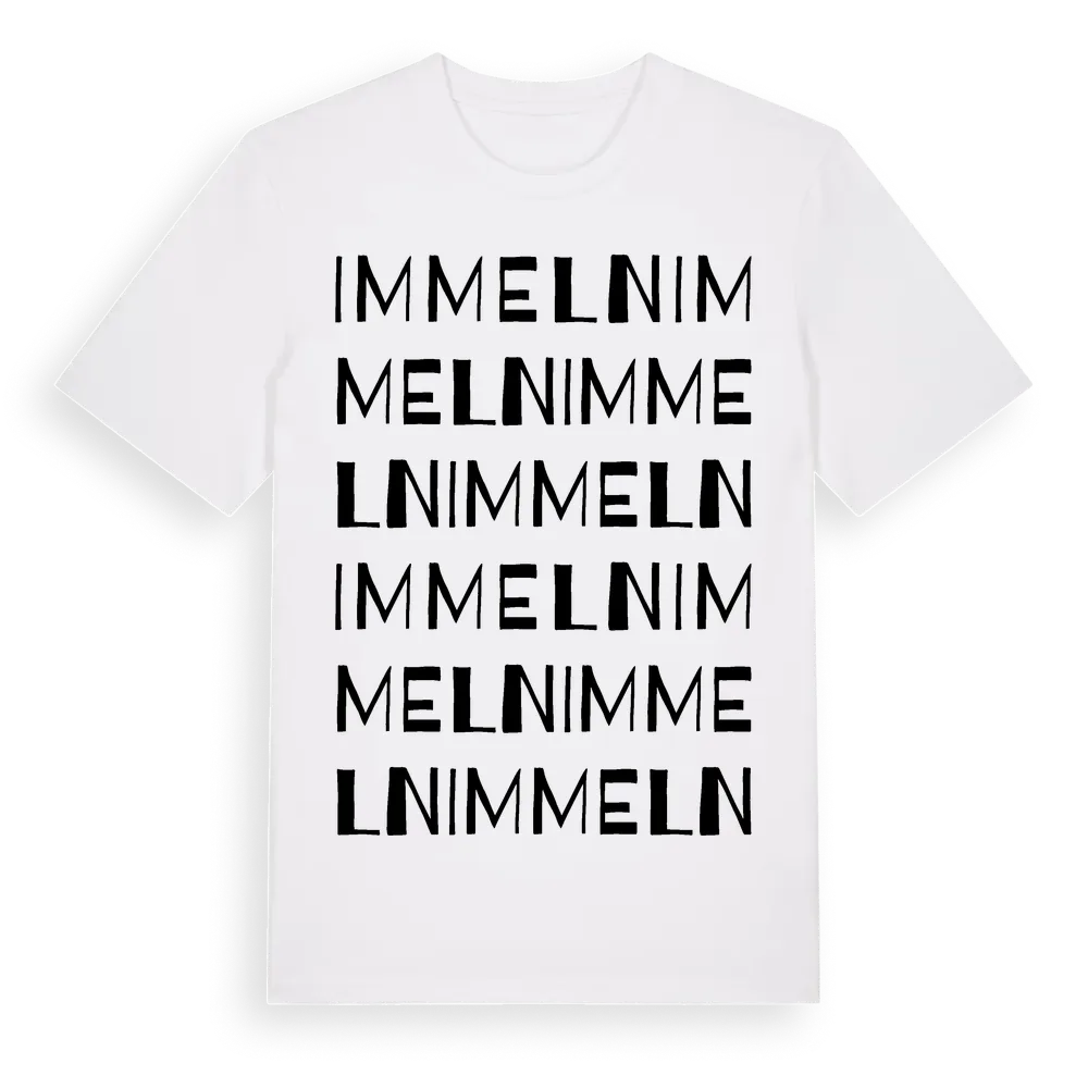 En ordlek byggd på Immelns namn. Subtilt och klurig – ett motiv som bara de som verkligen känner platsen fullt ut förstår. Premium bomull, unisex – från byn Immeln i Skåne län.