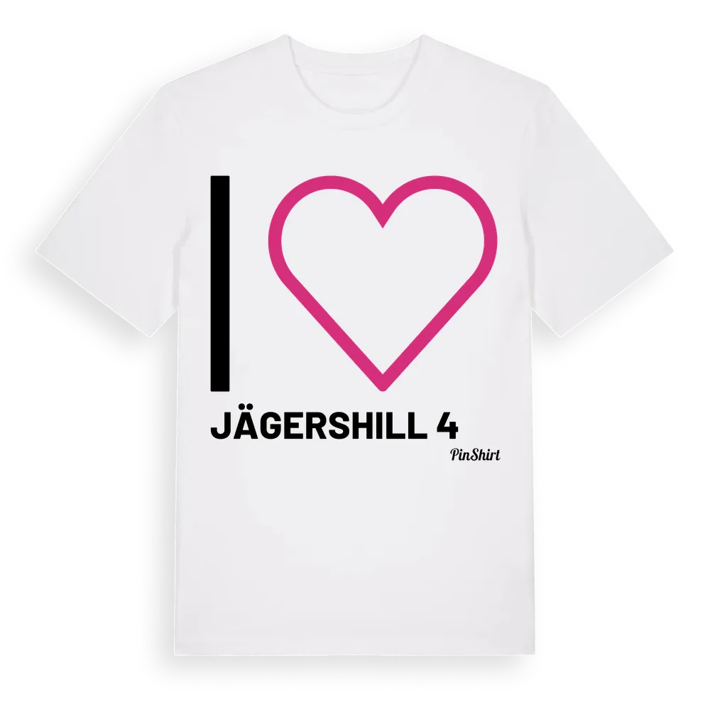 Det klassiska "I ❤ Jägershill 4"-motivet i stort format som täcker hela bröstet. För dig som vill visa kärleken till Jägershill 4 på riktigt. Premium bomull, unisex – från Jägershill 4 i Skåne län.