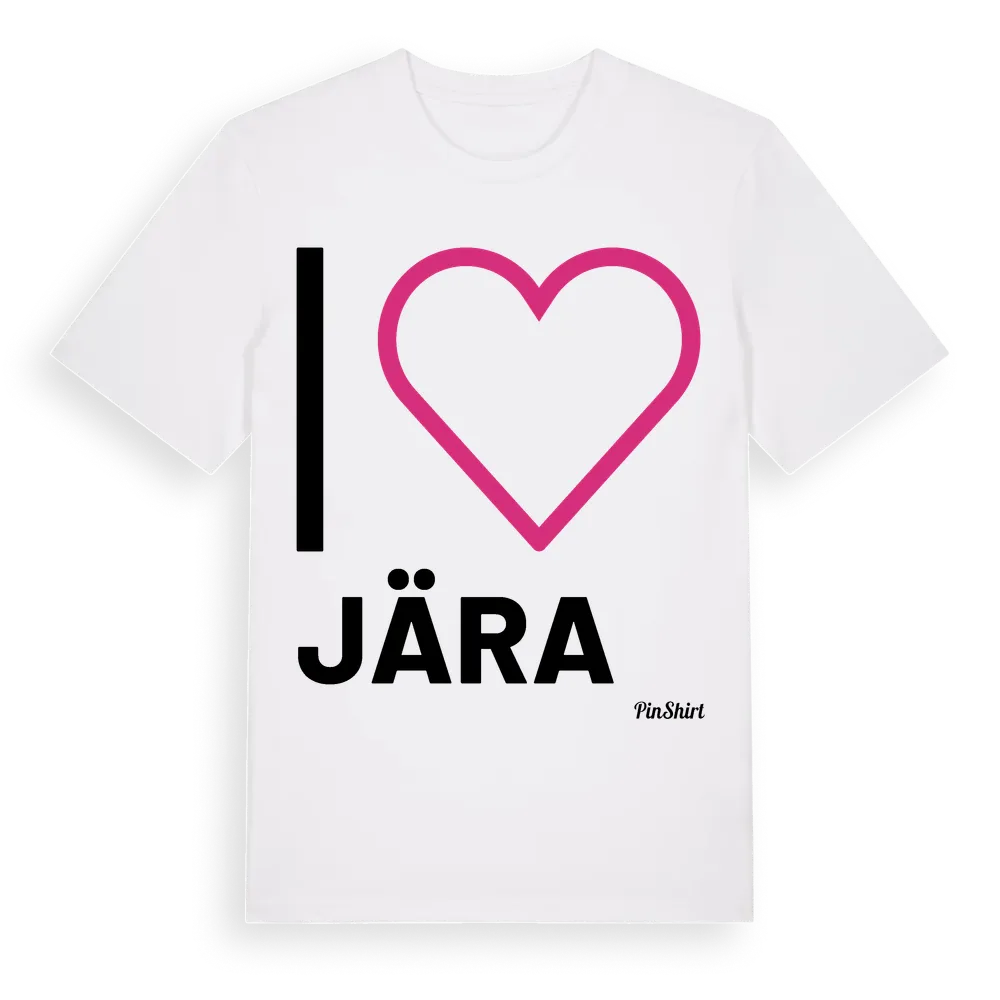 Det klassiska "I ❤ Jära"-motivet i stort format som täcker hela bröstet. För dig som vill visa kärleken till Jära på riktigt. Premium bomull, unisex – från byn Jära i Skåne län.