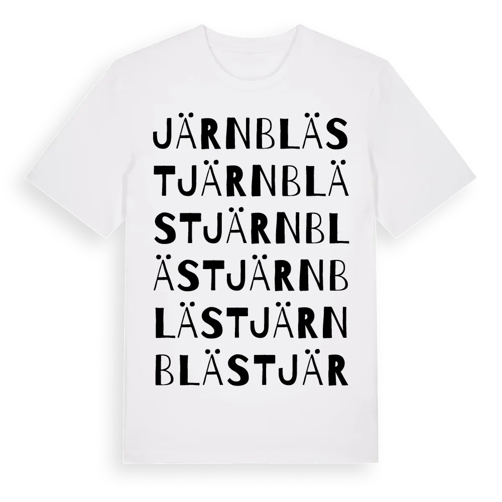 Järnbläst ordlek t-shirt är inspirerad av byn Järnbläst i Skåne län, Sverige. Tröjan är designad för dig som har en speciell koppling till platsen – oavsett om du bor här, har rötterna här eller bara älskar Järnbläst.