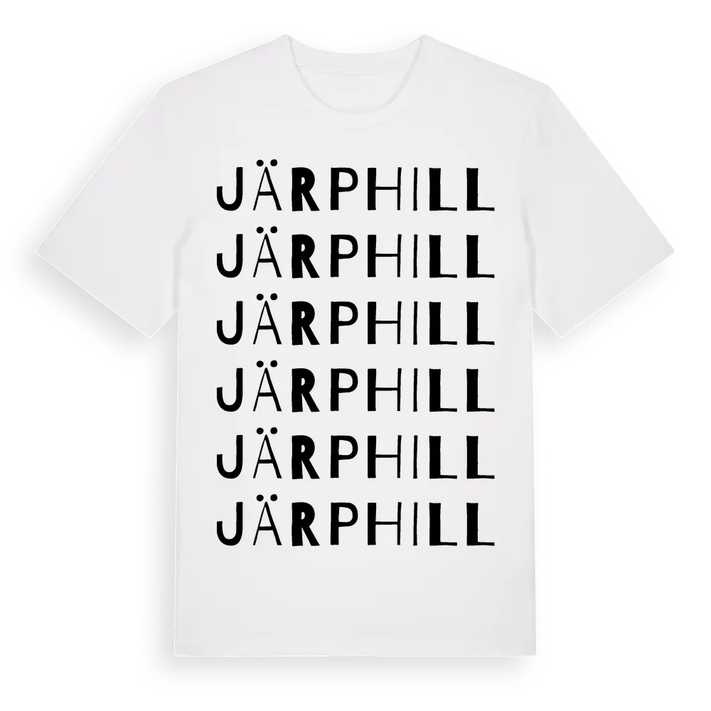 En ordlek byggd på Järphills namn. Subtilt och klurig – ett motiv som bara de som verkligen känner platsen fullt ut förstår. Premium bomull, unisex – från Järphill i Skåne län.