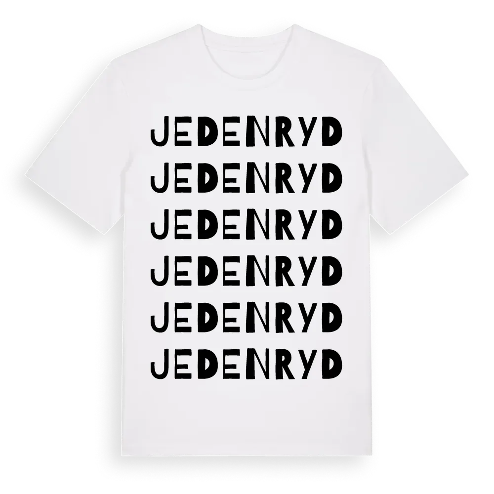 En ordlek byggd på Jedenryds namn. Subtilt och klurig – ett motiv som bara de som verkligen känner platsen fullt ut förstår. Premium bomull, unisex – från Jedenryd i Skåne län.