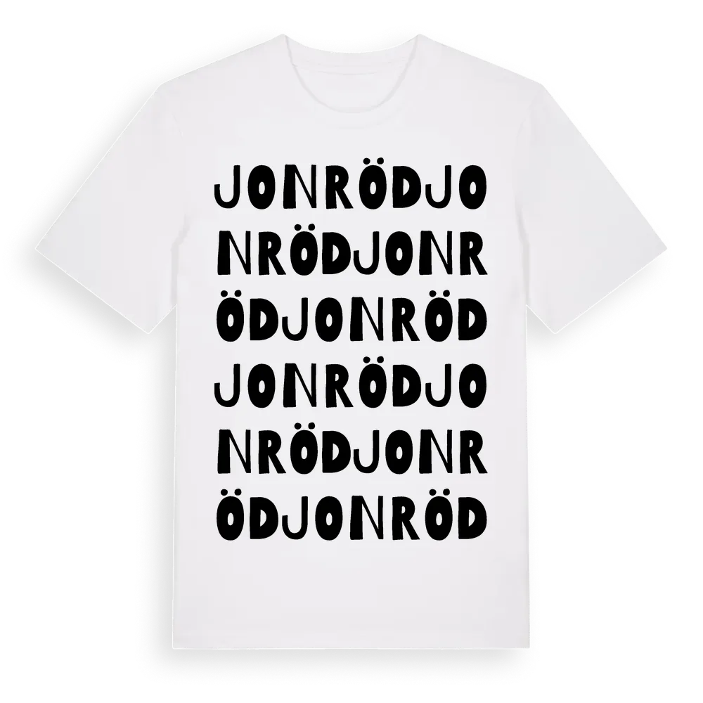 Jonröd ordlek t-shirt är inspirerad av byn Jonröd i Skåne län, Sverige. Tröjan är designad för dig som har en speciell koppling till platsen – oavsett om du bor här, har rötterna här eller bara älskar Jonröd.