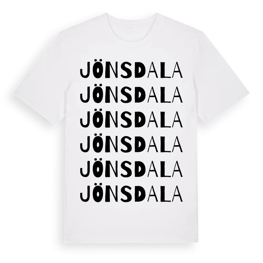 Jönsdala ordlek t-shirt är inspirerad av Jönsdala i Skåne län, Sverige. Tröjan är designad för dig som har en speciell koppling till platsen – oavsett om du bor här, har rötterna här eller bara älskar Jönsdala.