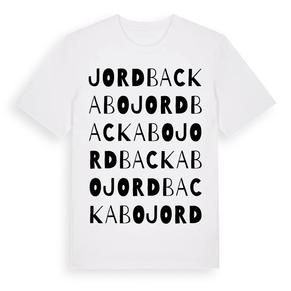 Jordbackabo ordlek t-shirt är inspirerad av Jordbackabo i Skåne län, Sverige. Tröjan är designad för dig som har en speciell koppling till platsen – oavsett om du bor här, har rötterna här eller bara älskar Jordbackabo.