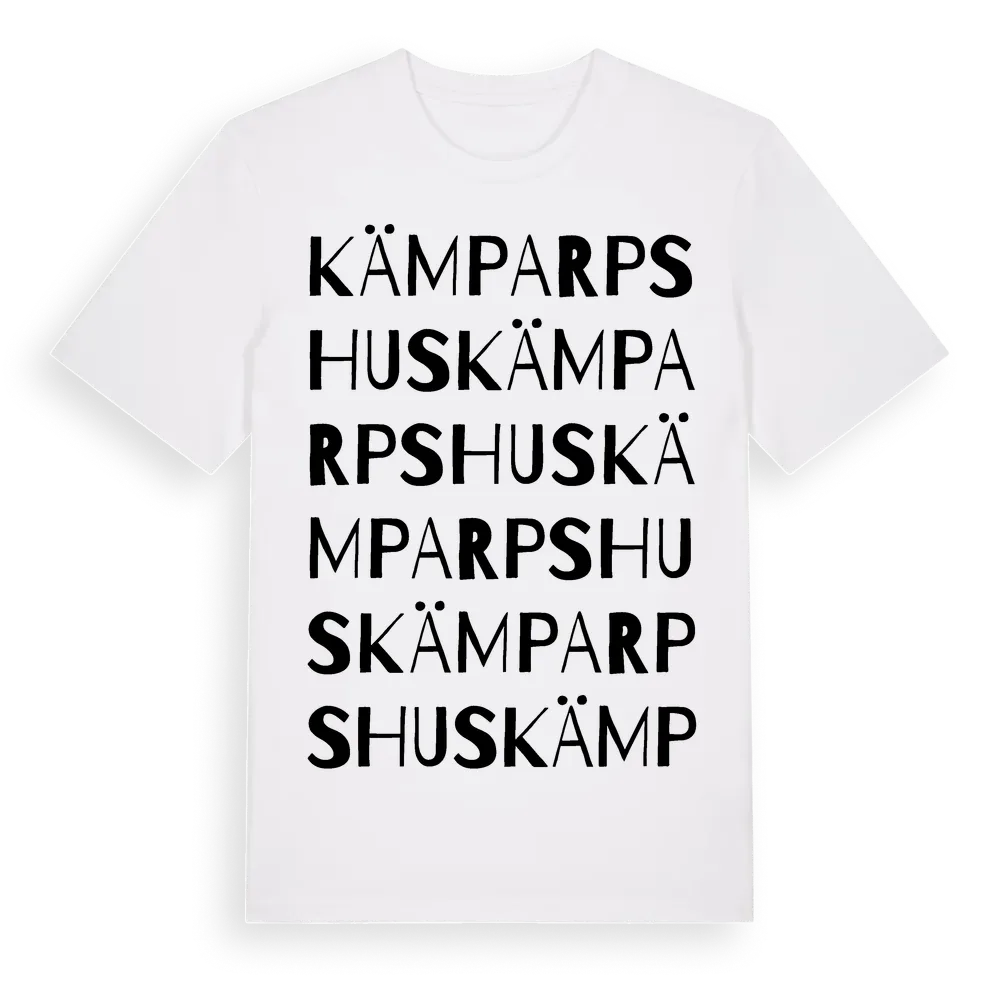 Kämparpshus ordlek t-shirt är inspirerad av Kämparpshus i Skåne län, Sverige. Tröjan är designad för dig som har en speciell koppling till platsen – oavsett om du bor här, har rötterna här eller bara älskar Kämparpshus.