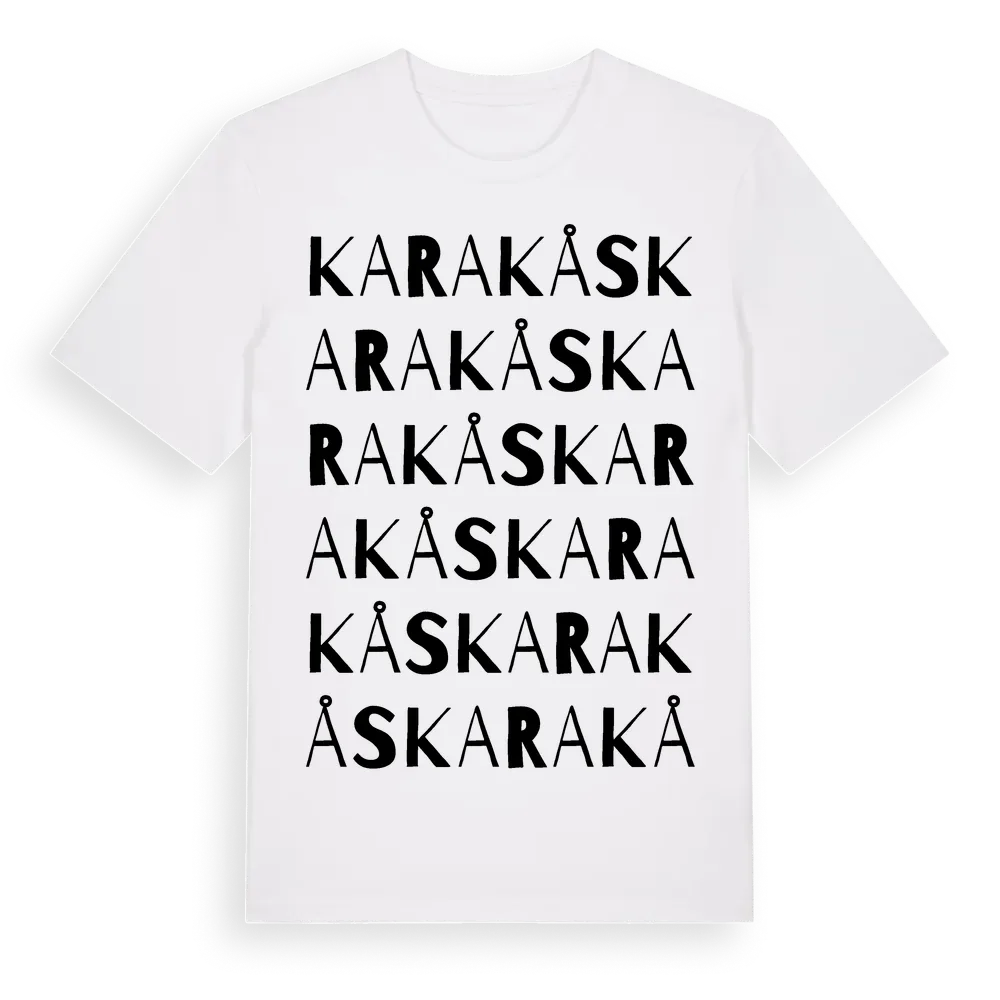 Karakås ordlek t-shirt är inspirerad av byn Karakås i Skåne län, Sverige. Tröjan är designad för dig som har en speciell koppling till platsen – oavsett om du bor här, har rötterna här eller bara älskar Karakås.