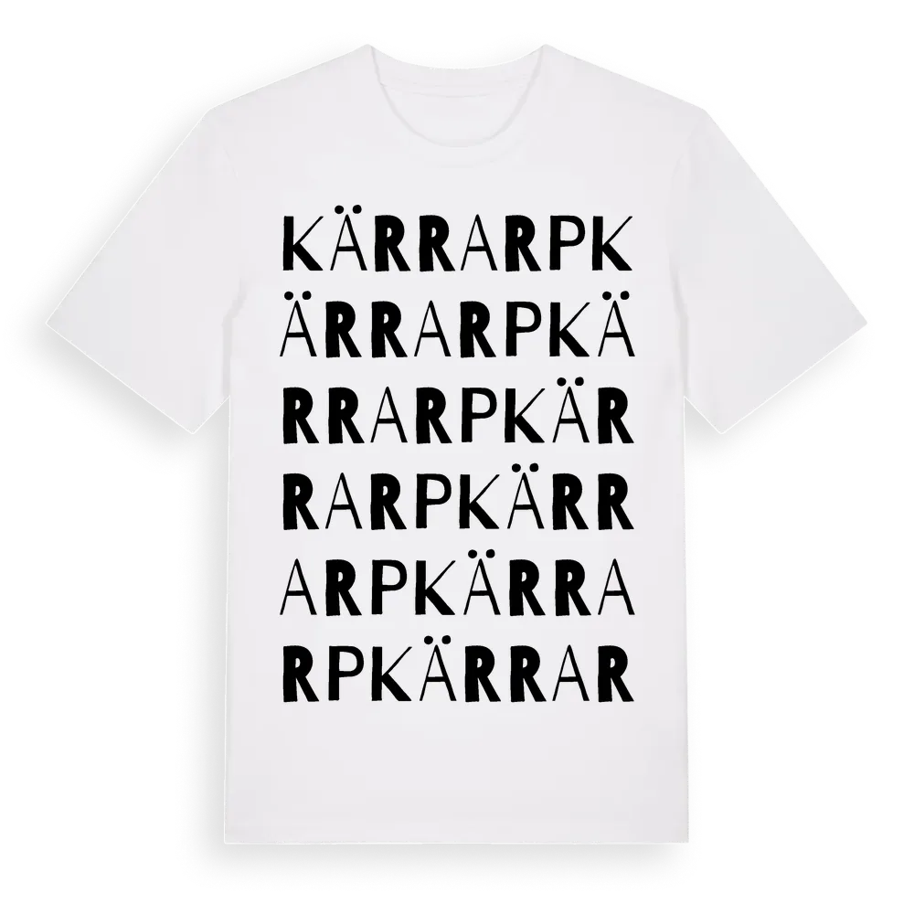Kärrarp ordlek t-shirt är inspirerad av byn Kärrarp i Skåne län, Sverige. Tröjan är designad för dig som har en speciell koppling till platsen – oavsett om du bor här, har rötterna här eller bara älskar Kärrarp.