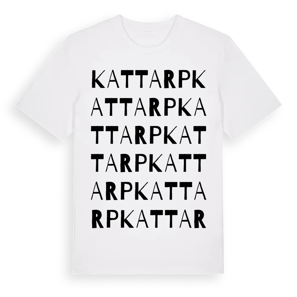 Kattarp ordlek t-shirt är inspirerad av Kattarp i Skåne län, Sverige. Tröjan är designad för dig som har en speciell koppling till platsen – oavsett om du bor här, har rötterna här eller bara älskar Kattarp.