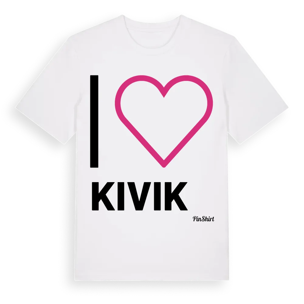 Jag älskar Kivik t-shirt stort tryck är inspirerad av byn Kivik i Skåne län, Sverige. Tröjan är designad för dig som har en speciell koppling till platsen – oavsett om du bor här, har rötterna här eller bara älskar Kivik.
