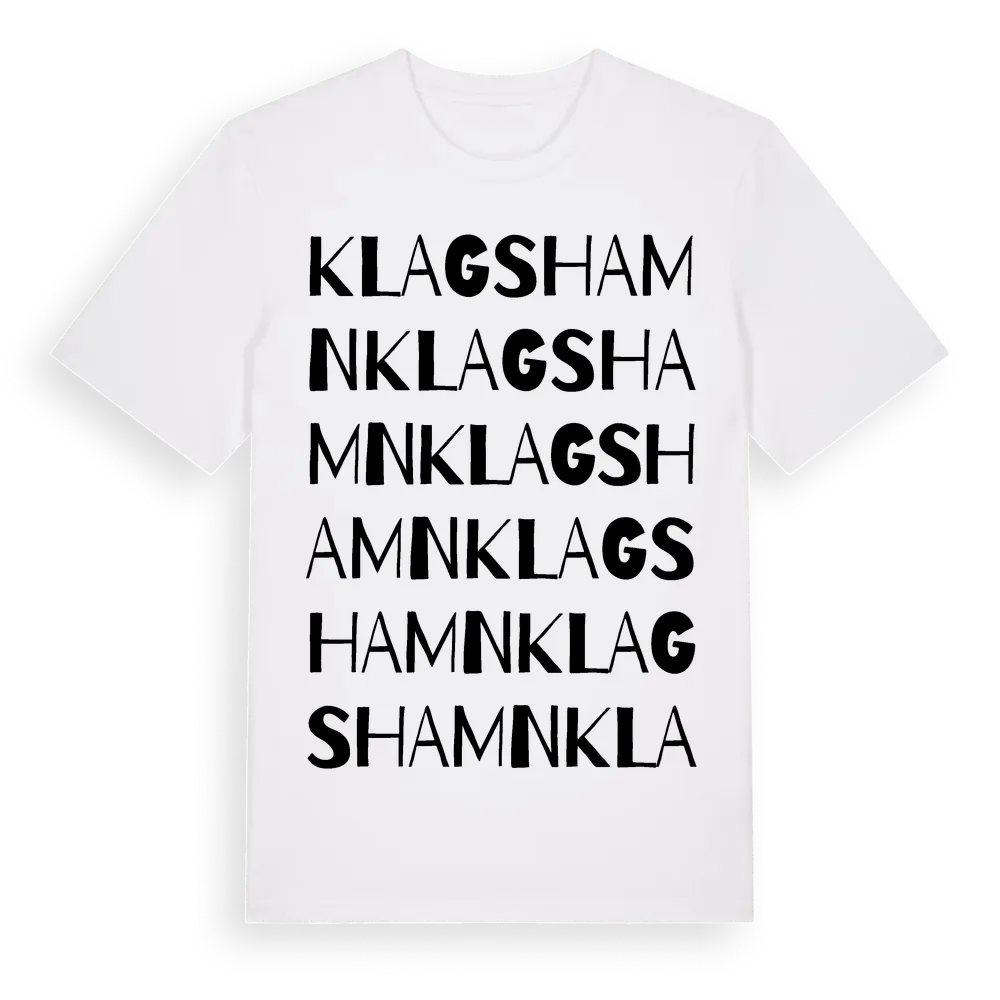Klagshamn ordlek t-shirt är inspirerad av stadsdelen Klagshamn i Skåne län, Sverige. Tröjan är designad för dig som har en speciell koppling till platsen – oavsett om du bor här, har rötterna här eller bara älskar Klagshamn.