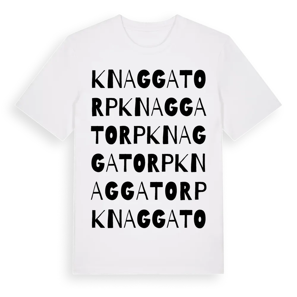 Knaggatorp ordlek t-shirt är inspirerad av Knaggatorp i Skåne län, Sverige. Tröjan är designad för dig som har en speciell koppling till platsen – oavsett om du bor här, har rötterna här eller bara älskar Knaggatorp.