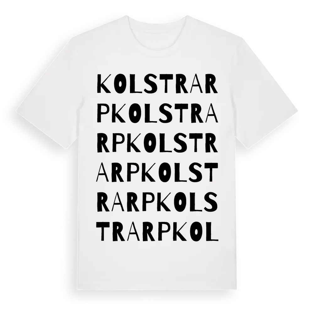 Kolstrarp ordlek t-shirt är inspirerad av byn Kolstrarp i Skåne län, Sverige. Tröjan är designad för dig som har en speciell koppling till platsen – oavsett om du bor här, har rötterna här eller bara älskar Kolstrarp.