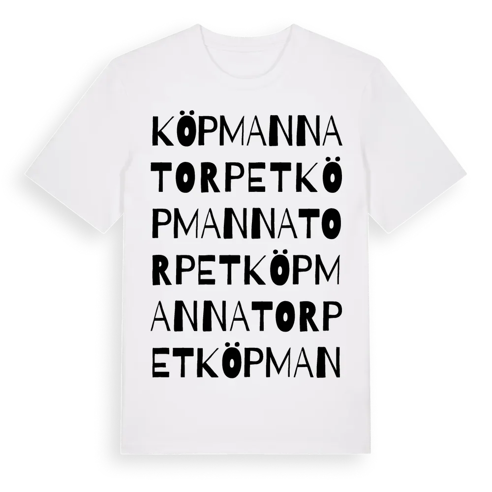 Köpmannatorpet ordlek t-shirt är inspirerad av Köpmannatorpet i Skåne län, Sverige. Tröjan är designad för dig som har en speciell koppling till platsen – oavsett om du bor här, har rötterna här eller bara älskar Köpmannatorpet.