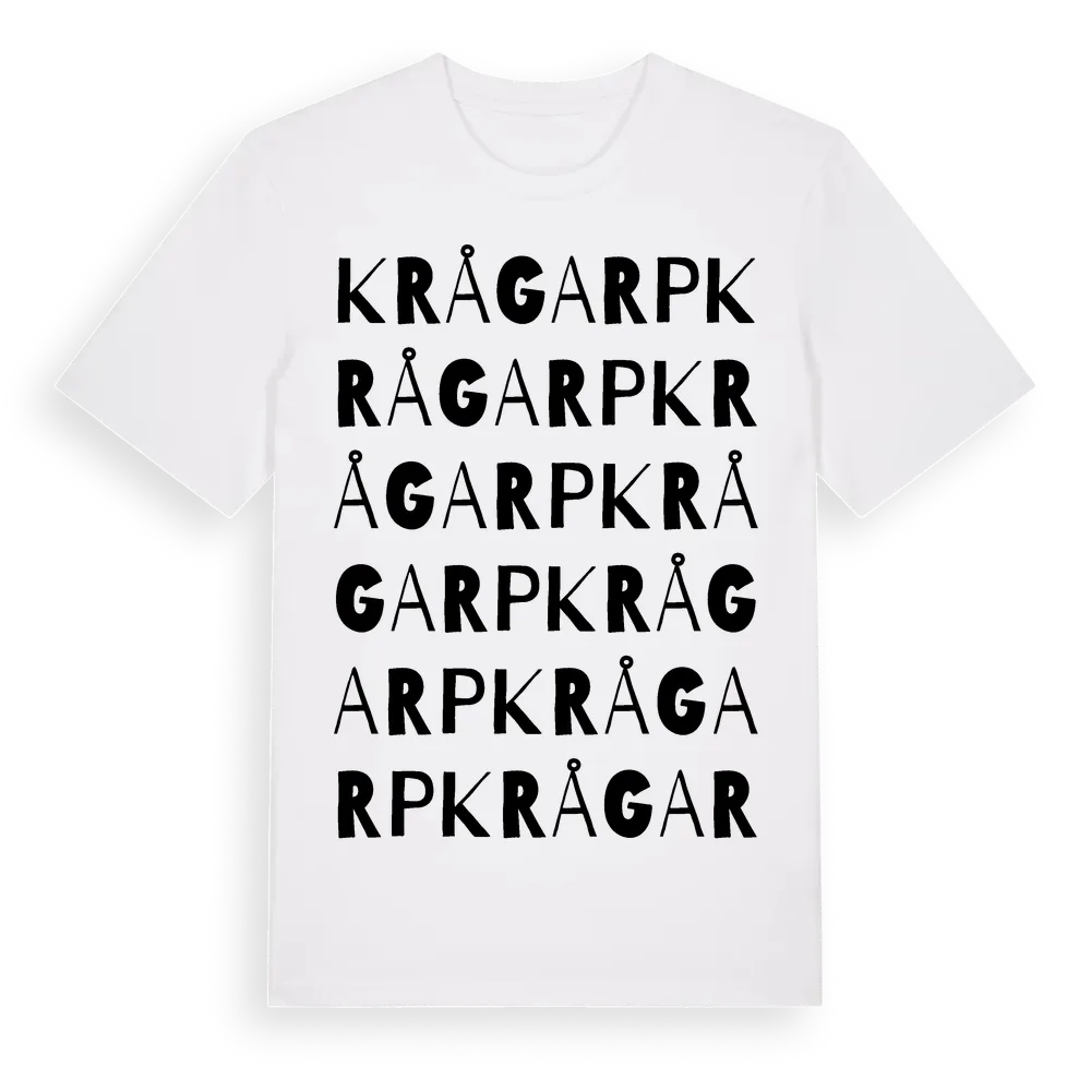 Krågarp ordlek t-shirt är inspirerad av byn Krågarp i Skåne län, Sverige. Tröjan är designad för dig som har en speciell koppling till platsen – oavsett om du bor här, har rötterna här eller bara älskar Krågarp.