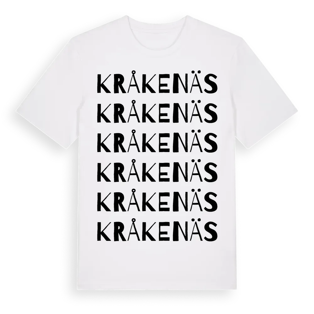 Kråkenäs ordlek t-shirt är inspirerad av Kråkenäs i Skåne län, Sverige. Tröjan är designad för dig som har en speciell koppling till platsen – oavsett om du bor här, har rötterna här eller bara älskar Kråkenäs.