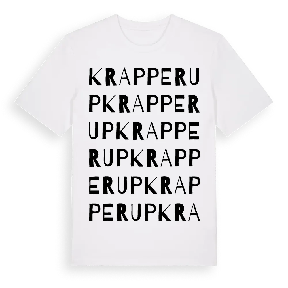 En ordlek byggd på Krapperups namn. Subtilt och klurig – ett motiv som bara de som verkligen känner platsen fullt ut förstår. Premium bomull, unisex – från byn Krapperup i Skåne län.