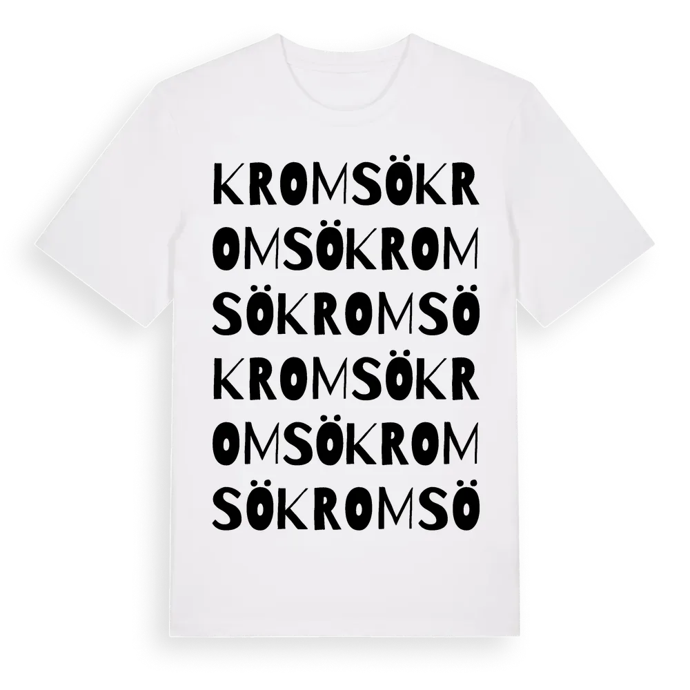 Kromsö ordlek t-shirt är inspirerad av Kromsö i Skåne län, Sverige. Tröjan är designad för dig som har en speciell koppling till platsen – oavsett om du bor här, har rötterna här eller bara älskar Kromsö.