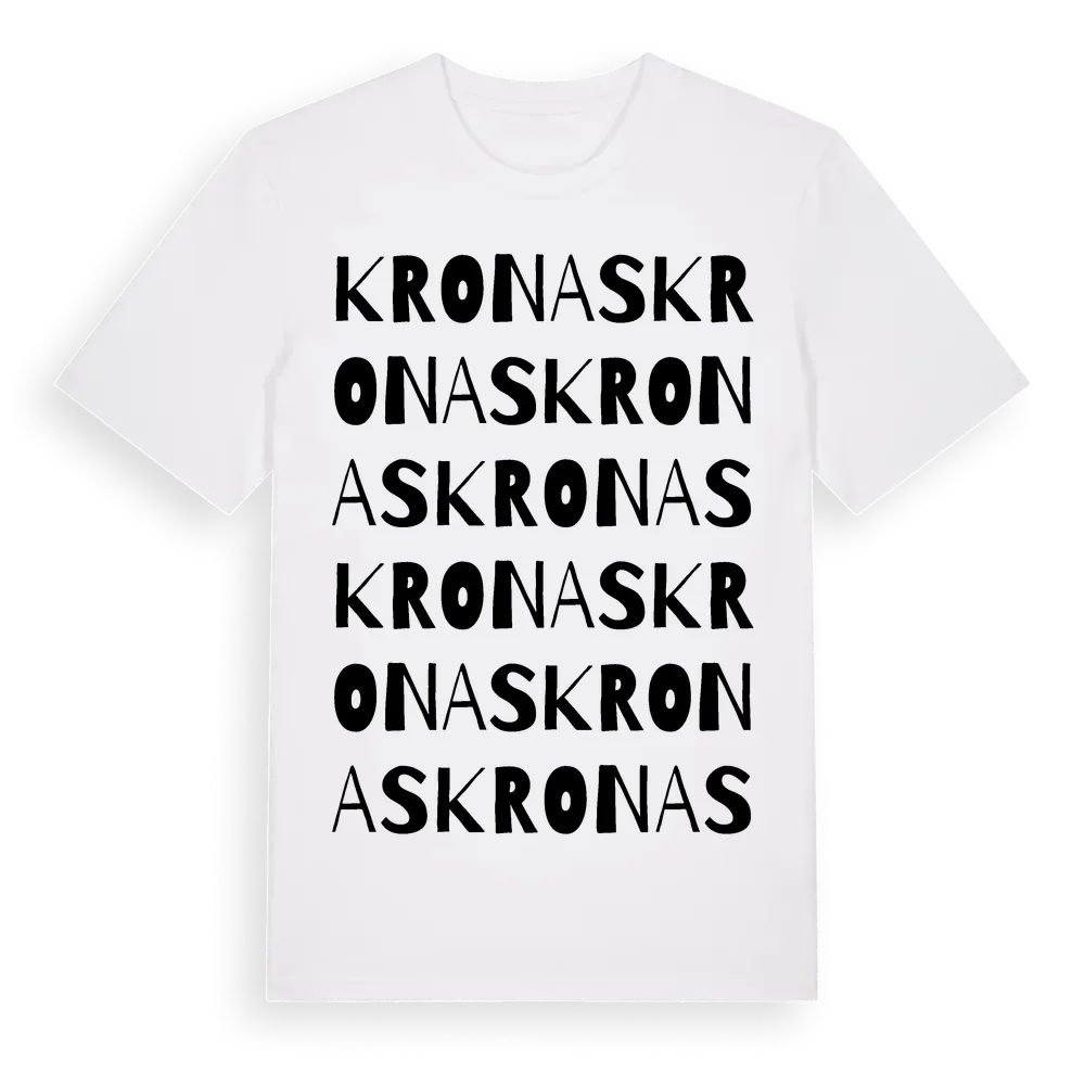 Kronas ordlek t-shirt är inspirerad av Kronas i Skåne län, Sverige. Tröjan är designad för dig som har en speciell koppling till platsen – oavsett om du bor här, har rötterna här eller bara älskar Kronas.