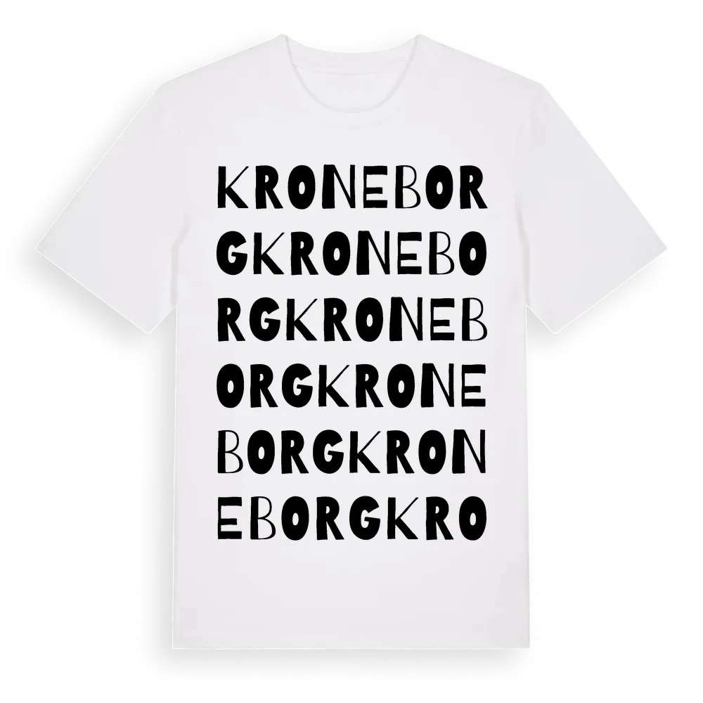 Kroneborg ordlek t-shirt är inspirerad av Kroneborg i Skåne län, Sverige. Tröjan är designad för dig som har en speciell koppling till platsen – oavsett om du bor här, har rötterna här eller bara älskar Kroneborg.