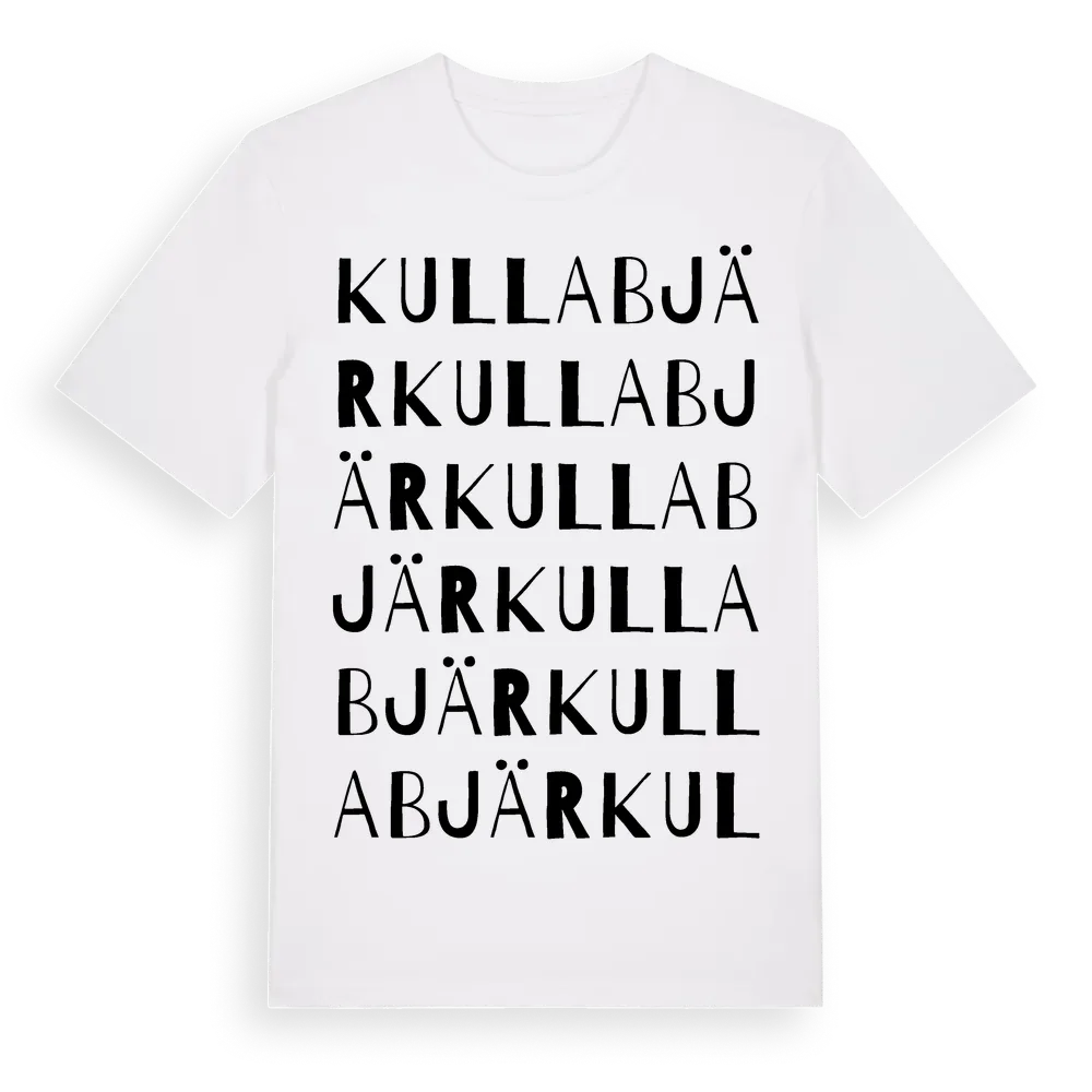 Kullabjär ordlek t-shirt är inspirerad av Kullabjär i Skåne län, Sverige. Tröjan är designad för dig som har en speciell koppling till platsen – oavsett om du bor här, har rötterna här eller bara älskar Kullabjär.