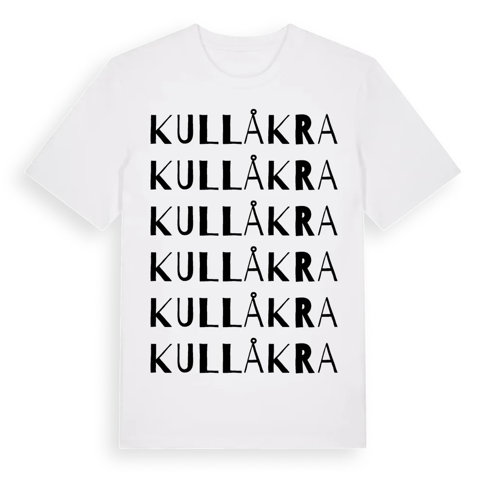 Kullåkra ordlek t-shirt är inspirerad av Kullåkra i Skåne län, Sverige. Tröjan är designad för dig som har en speciell koppling till platsen – oavsett om du bor här, har rötterna här eller bara älskar Kullåkra.
