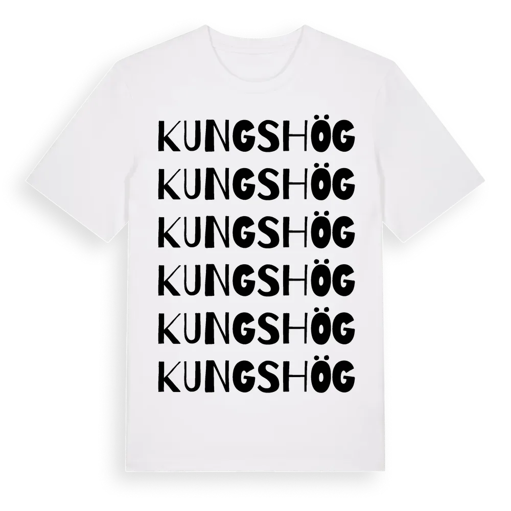 Kungshög ordlek t-shirt är inspirerad av Kungshög i Skåne län, Sverige. Tröjan är designad för dig som har en speciell koppling till platsen – oavsett om du bor här, har rötterna här eller bara älskar Kungshög.