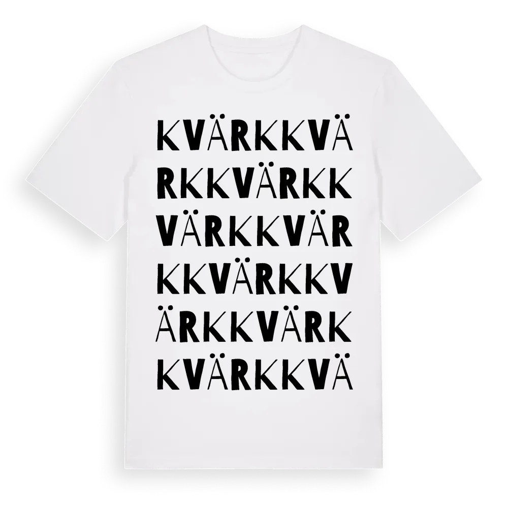 Kvärk ordlek t-shirt är inspirerad av Kvärk i Skåne län, Sverige. Tröjan är designad för dig som har en speciell koppling till platsen – oavsett om du bor här, har rötterna här eller bara älskar Kvärk.