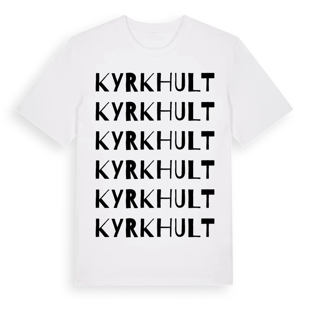 Kyrkhult ordlek t-shirt är inspirerad av Kyrkhult i Skåne län, Sverige. Tröjan är designad för dig som har en speciell koppling till platsen – oavsett om du bor här, har rötterna här eller bara älskar Kyrkhult.