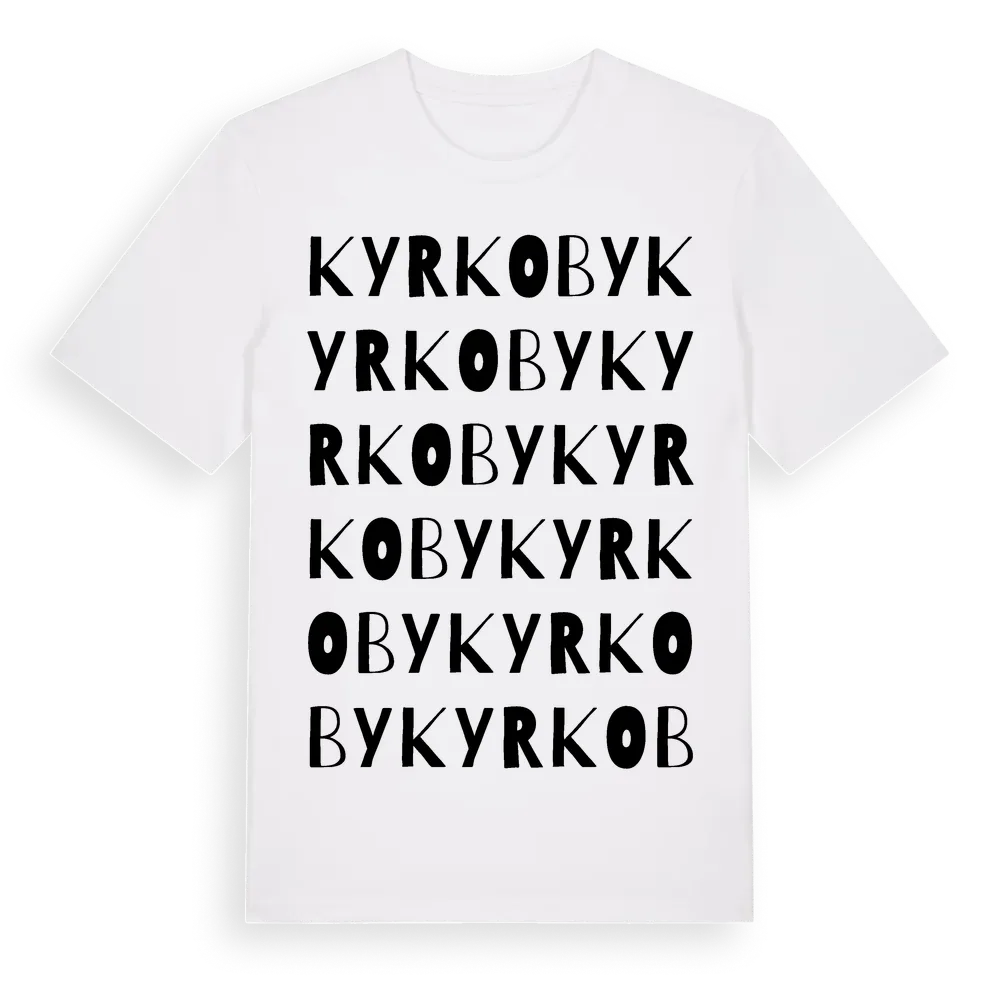 Kyrkoby ordlek t-shirt är inspirerad av byn Kyrkoby i Skåne län, Sverige. Tröjan är designad för dig som har en speciell koppling till platsen – oavsett om du bor här, har rötterna här eller bara älskar Kyrkoby.