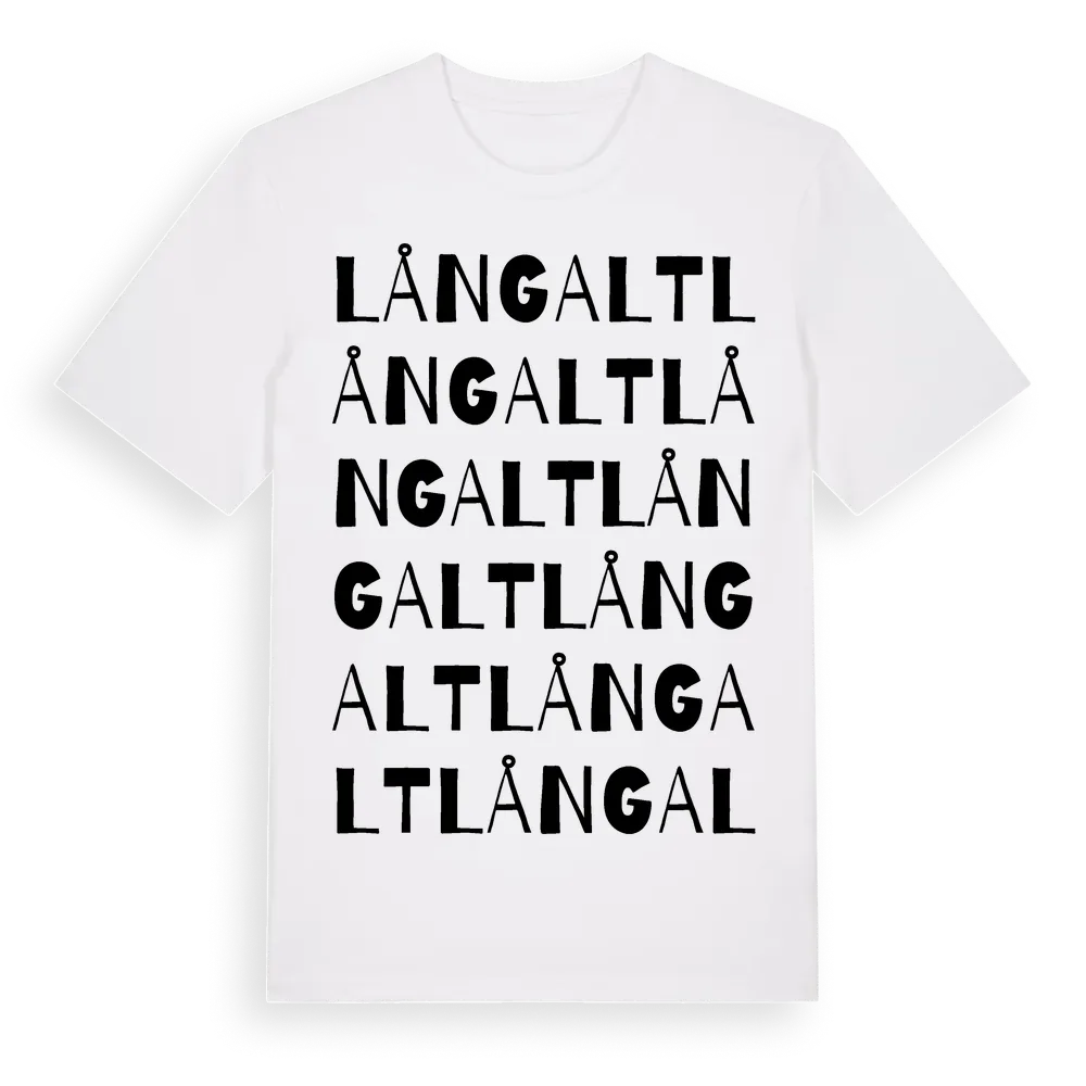 Långalt ordlek t-shirt är inspirerad av byn Långalt i Skåne län, Sverige. Tröjan är designad för dig som har en speciell koppling till platsen – oavsett om du bor här, har rötterna här eller bara älskar Långalt.