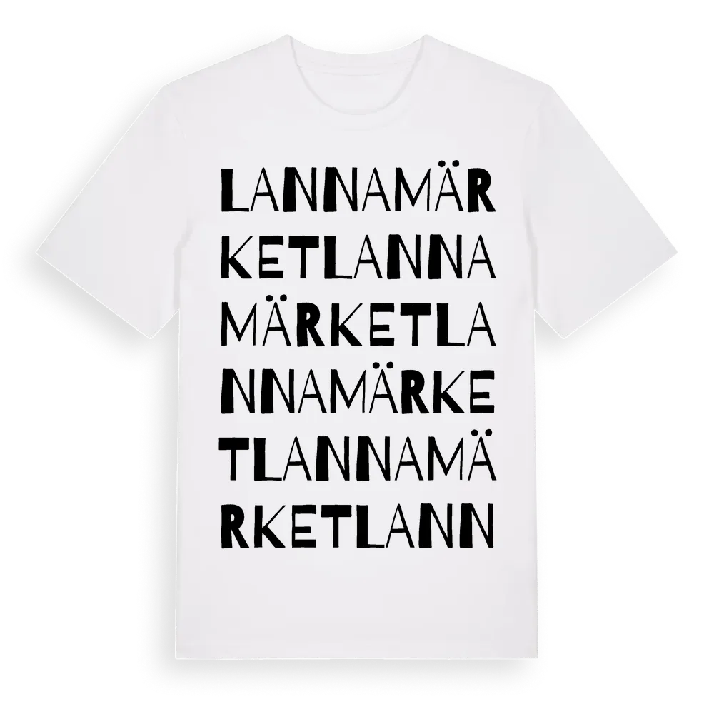 Lannamärket ordlek t-shirt är inspirerad av Lannamärket i Skåne län, Sverige. Tröjan är designad för dig som har en speciell koppling till platsen – oavsett om du bor här, har rötterna här eller bara älskar Lannamärket.