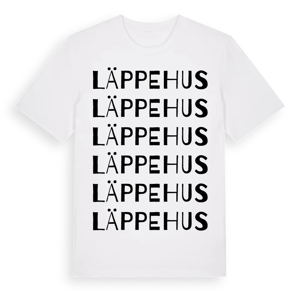 Läppehus ordlek t-shirt är inspirerad av Läppehus i Skåne län, Sverige. Tröjan är designad för dig som har en speciell koppling till platsen – oavsett om du bor här, har rötterna här eller bara älskar Läppehus.