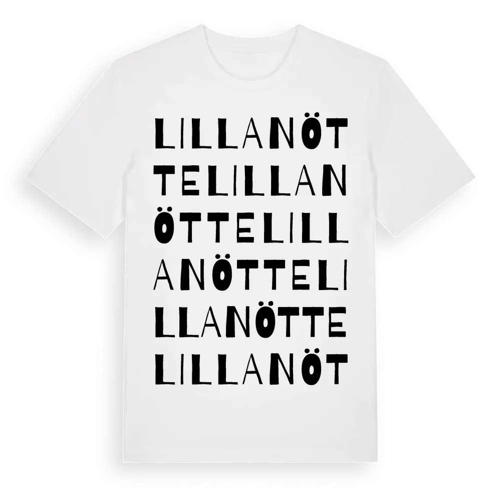 En ordlek byggd på Lilla Nöttes namn. Subtilt och klurig – ett motiv som bara de som verkligen känner platsen fullt ut förstår. Premium bomull, unisex – från Lilla Nötte i Skåne län.
