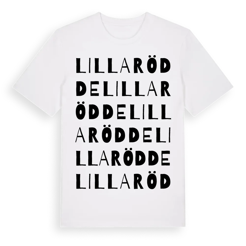 Lilla Rödde ordlek t-shirt är inspirerad av byn Lilla Rödde i Skåne län, Sverige. Tröjan är designad för dig som har en speciell koppling till platsen – oavsett om du bor här, har rötterna här eller bara älskar Lilla Rödde.