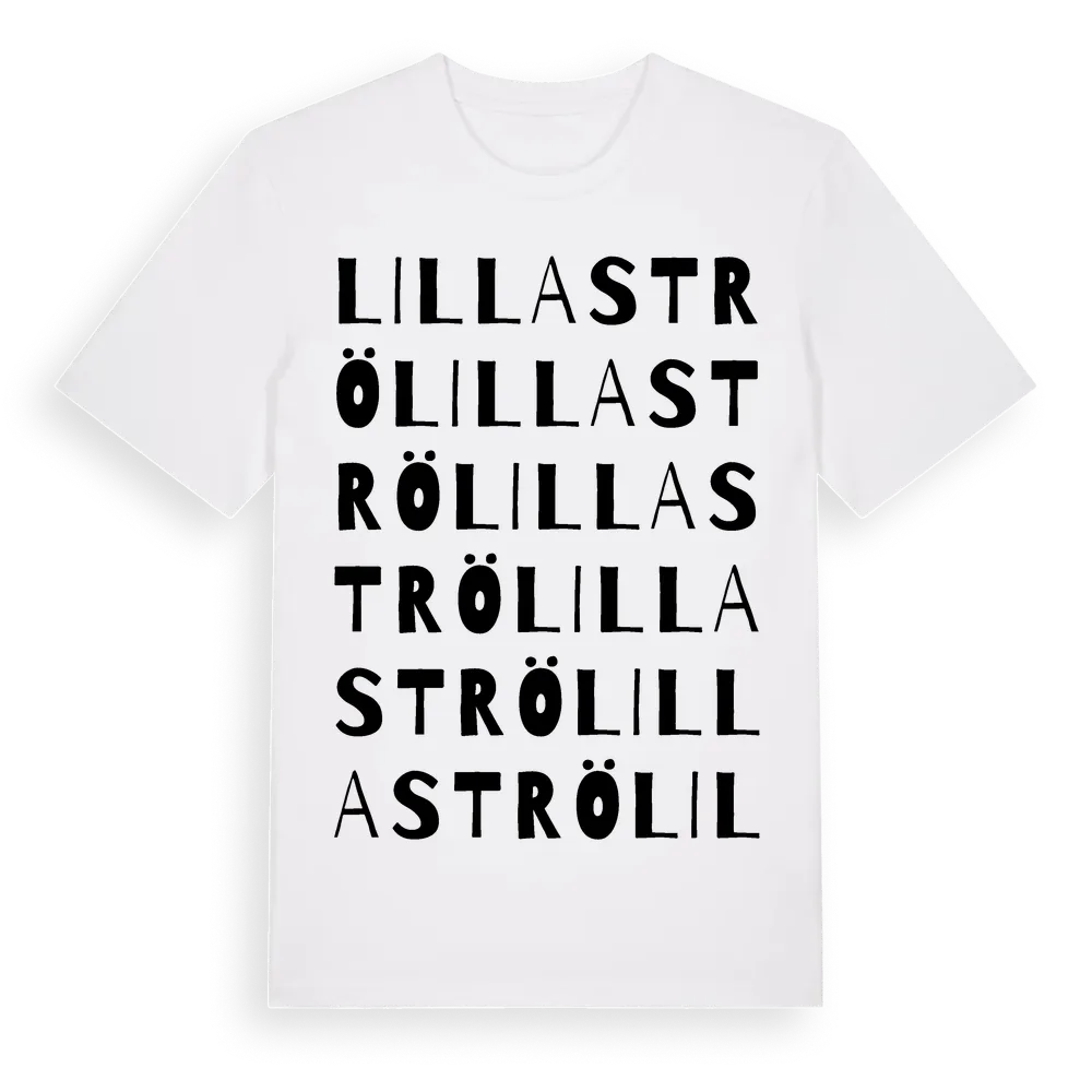 Lilla Strö ordlek t-shirt är inspirerad av Lilla Strö i Skåne län, Sverige. Tröjan är designad för dig som har en speciell koppling till platsen – oavsett om du bor här, har rötterna här eller bara älskar Lilla Strö.