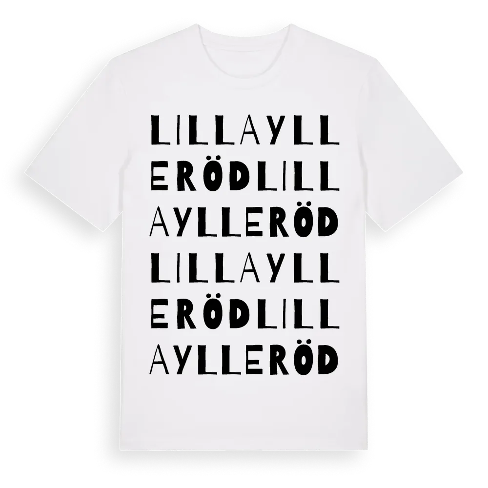 Lilla Ylleröd ordlek t-shirt är inspirerad av byn Lilla Ylleröd i Skåne län, Sverige. Tröjan är designad för dig som har en speciell koppling till platsen – oavsett om du bor här, har rötterna här eller bara älskar Lilla Ylleröd.